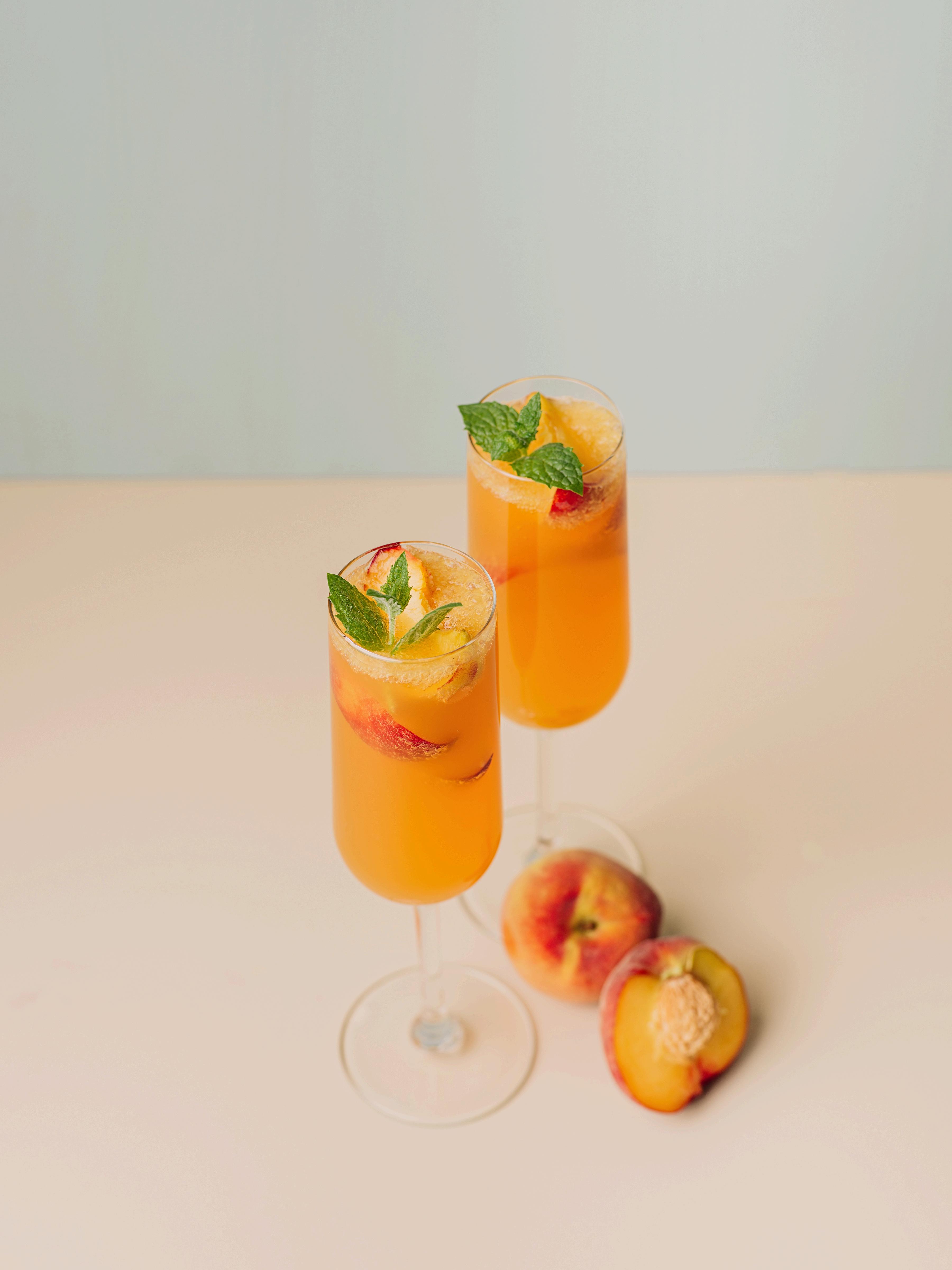Step 3: Refrigerate peach puree until cold, about 30 minutes. When ready to serve, add about 2 tablespoons puree to the bottom of each serving glass. Top with Prosecco, add a sprig of fresh mint, and serve.