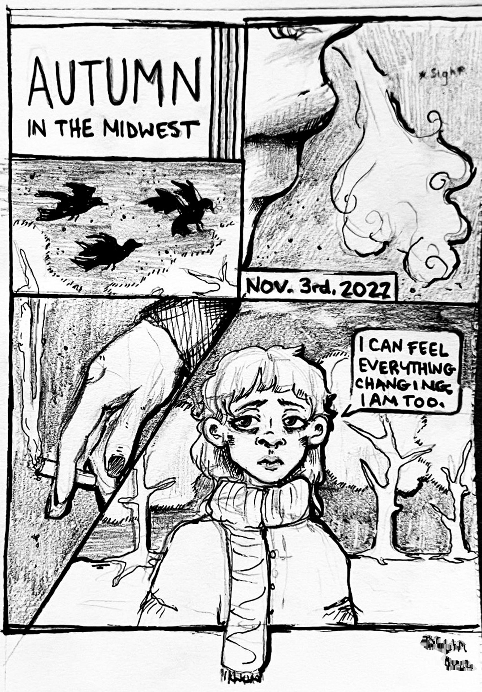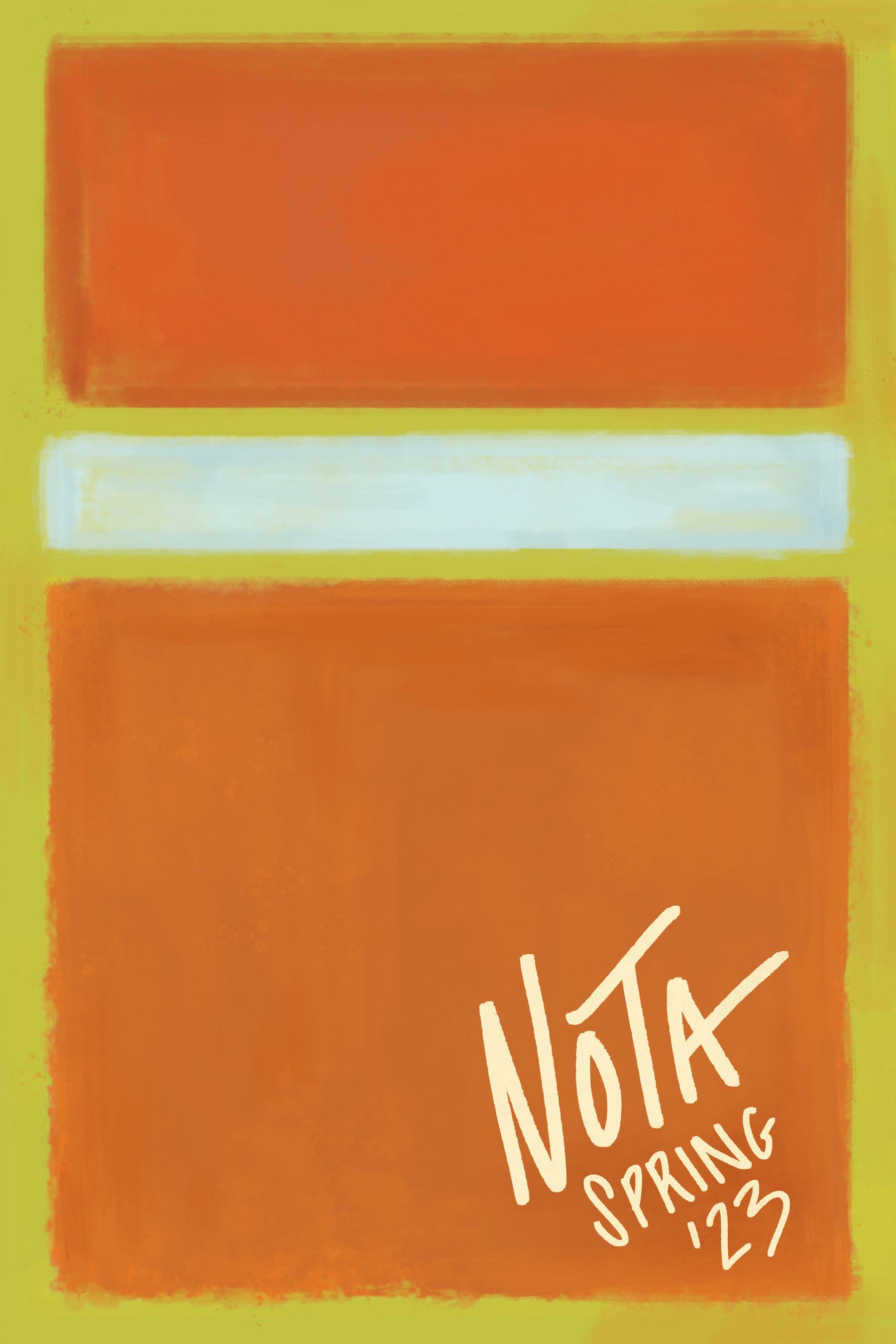 In your hands, you hold the Spring 2023 issue of None of the Above. This book features exceptional literature, art, and music created by UW-Eau Claire students belonging to all academic disciplines. We are honored to continue NOTA’s decadeslong tradition of publishing students. We are especially thrilled to share this issue due to the number of submissions we could accept. Last semester, we accepted more work than usual. This time, due to the suddenly and shockingly low cost of paper, we accepted even more, a fact we could not be happier about. This semester’s issue is loosely based on artwork by Mark Rothko and other similar abstract artists, making this book its own work of art.