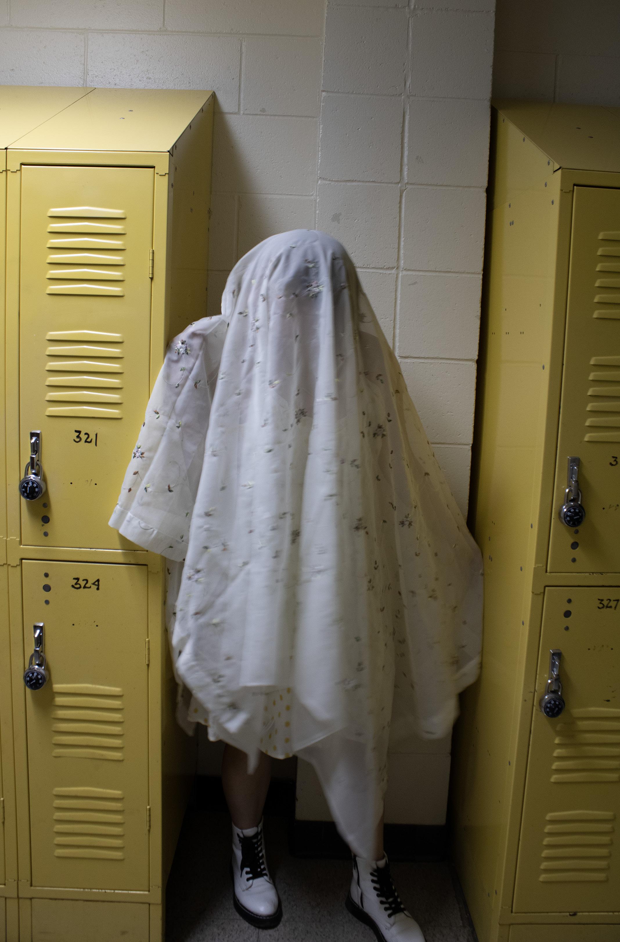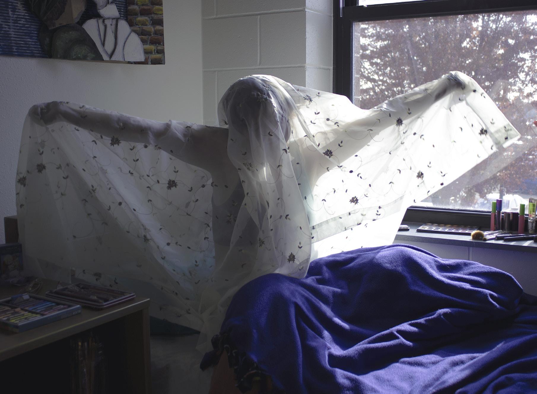 Succumbing to the pull of the wall the silent observer Olivia unable to break free from patterned mannerisms of a life in the shadows