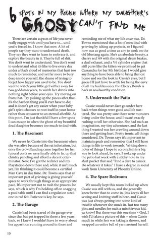 2. The Garage Cassie had been scared of the garage ever since that bat got trapped in there a few years back, so I knew I wouldn’t have to worry about her apparition running around in there and 10