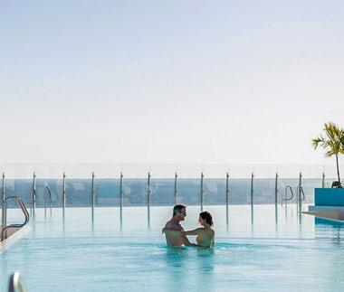 Afterwards, hit the resort’s adults-only rooftop pool area, Level Blue. There are plenty of spots to stretch out and tan and an onsite bar to keep you and your partner hydrated. The view from the gorgeous infinity pool is breathtaking, offering awe-inspiring vistas that will leave a lasting impression.