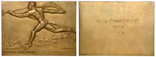 FRANCE, 25èmeanniversairedelaSociétéAstronomiquedeFrance,1911[struck1912],aunifaceArtNouveaubronze plaquebyA.Zeitlin,half-length "gureofCamilleFlammarionattendedbytwowinged "gures,globetoleft,elevationoftheHôtel des sociétés savantes to right, 84 x 80mm, 131.40g (PBE 1032; BDM VI, 725). Good very ne, very rare