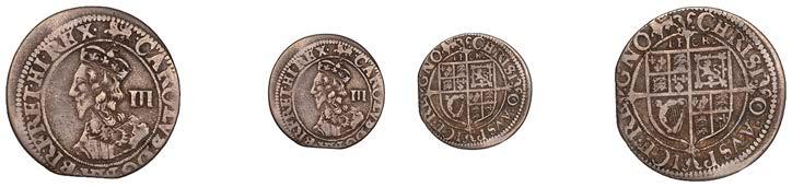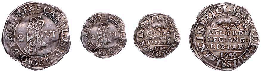 28 x Bridgnorth-on-Severn (?), Sixpence, 1646, mm. B on obv only, reads REL PROT, scrolls surmounted by plume between two plumelets above Declaration, date below, 2.97g/7h (Morr. A-2; SCBI Brooker 1132; N 2523; S 3041). A little double-struck, otherwise nearly very ne, toned £400-£600