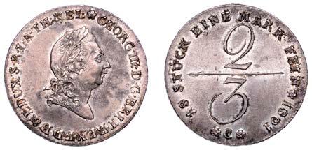 240 x George III, Two-Thirds Thaler, 1801 C, Clausthal (Welter 2810; KM 412). Minor discolouration on obverse, otherwise about extremely ne with subdued mint bloom £120-£150