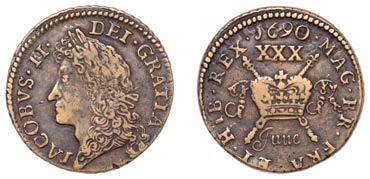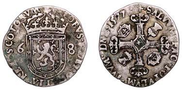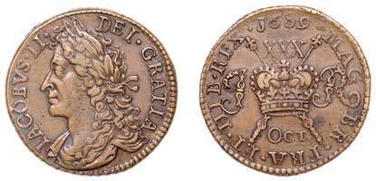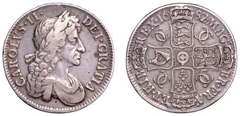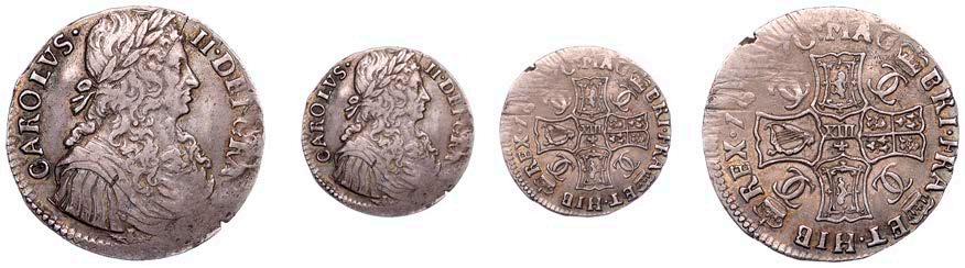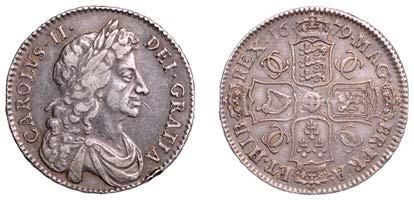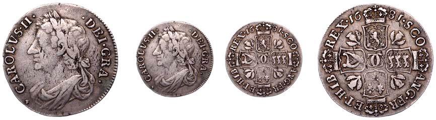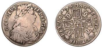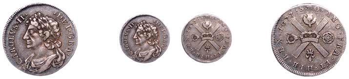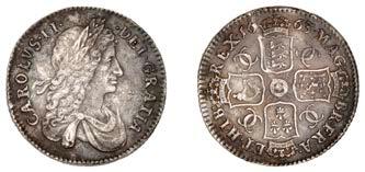 42 x Halfcrown,1679,fourthbust,nostopafter HIB,edge TRICESIMOPRIMO (cf. ESC483;S3367). Bruisedat5o’clockonobverse,otherwise nearly very ne, reverse a touch better, toned