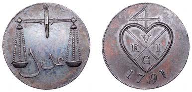 244 x Double Pice or 8 Reas, 1791, type A/II, 13.11g/6h (Prid. 118; Stevens 8.2; KM 196). Light residue, otherwise good extremely ne with an attractive patina £100-£120