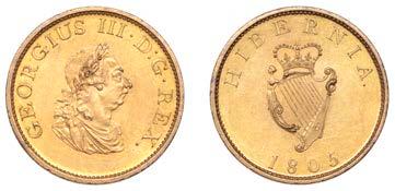 x 229 Proof Halfpenny, 1805, in gilt-copper, edge centre-grained, 8.79g/6h (S 6621). Hairlines, otherwise about extremely ne £90-£120