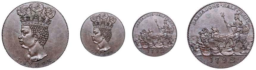232 x ST.JAMES, SirPhilipGibbes,Halfpenny,1792(Prid.17;Lyall70;KMTn9); NOVASCOTIA, Halifax,Halfpenny,1814, CaptainBroke,longbust(Breton879;CCTNS-7A); SUMATRA, EIC,4Keping,AH1219(1804)(Prid.5;KM267)[3]. Generally fair £50-£70
