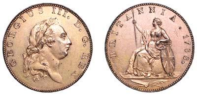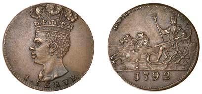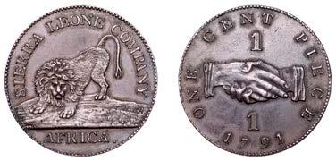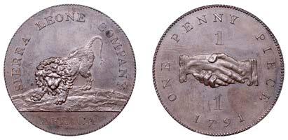 247 x SierraLeoneCo,ProofPenny,1791,inbronzed-copper,edgeplain,18.88g/6h(Vice8A;KM2.1). Darkchocolate-brownpatina, good extremely ne £200-£260