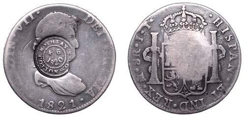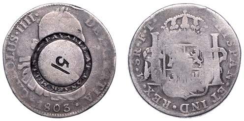 239 x Republic, Real, type VI countermark on obv. of Victoria Sixpence, 1844 (KM. 90). Coin ne, countermark about very ne £60-£80