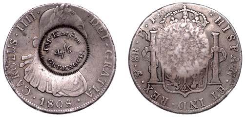 236 x Republic, countermarked coinage, 2 Reales, a George III Shilling, 1816, with type VI countermark (KM 93). Coin scratched otherwise ne, countermark good very ne, scarce £100-£120