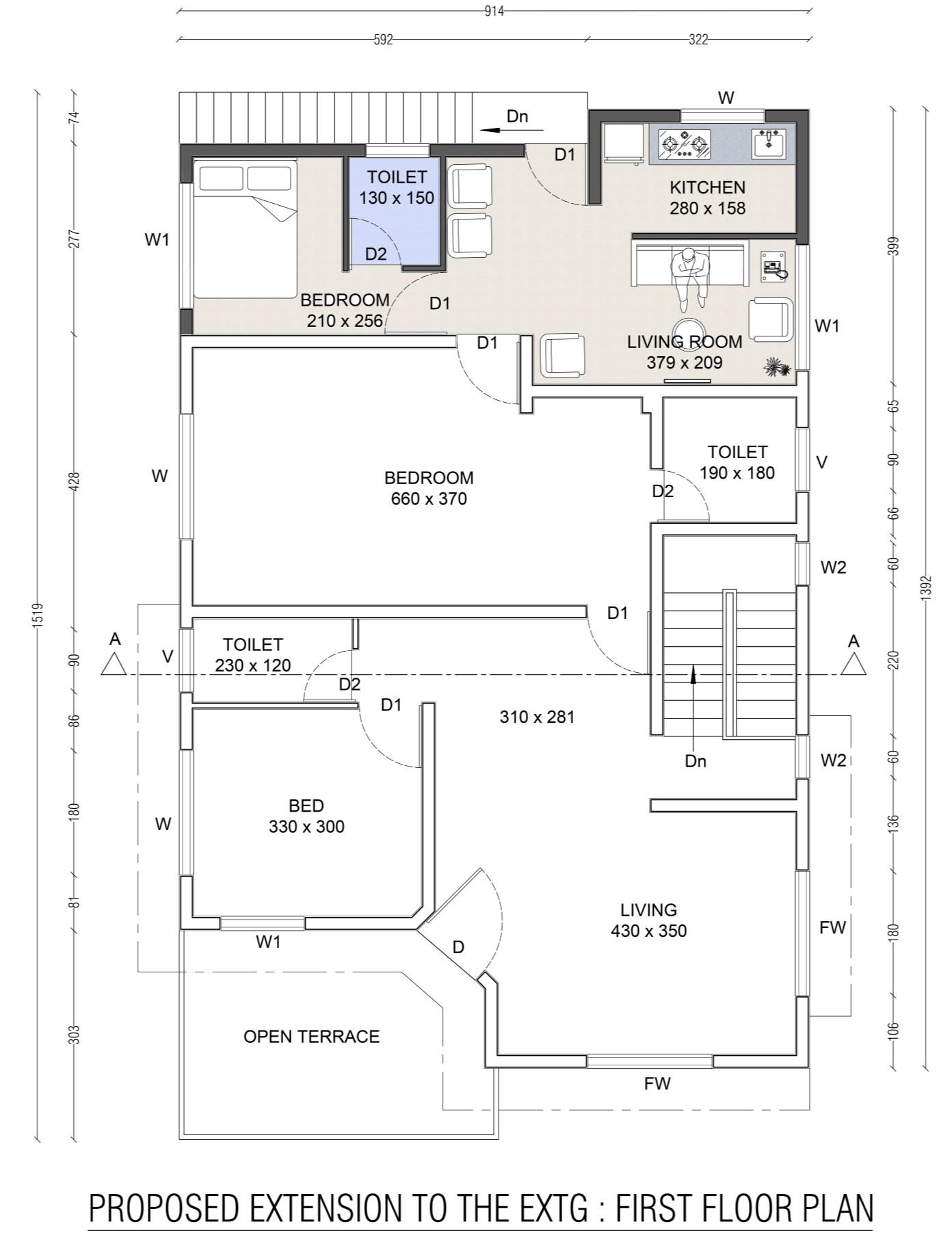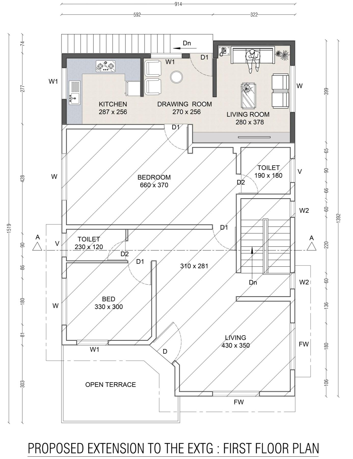 3. Projectdetails – Extensionin the 1st floor , Requirement– Living + Kitchen + Bedroom.