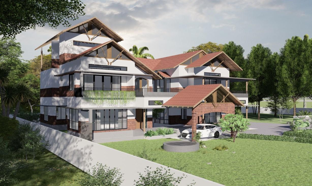 3. Project details – 4 BHK + 2 Living room with colonial Kerala Architecture .