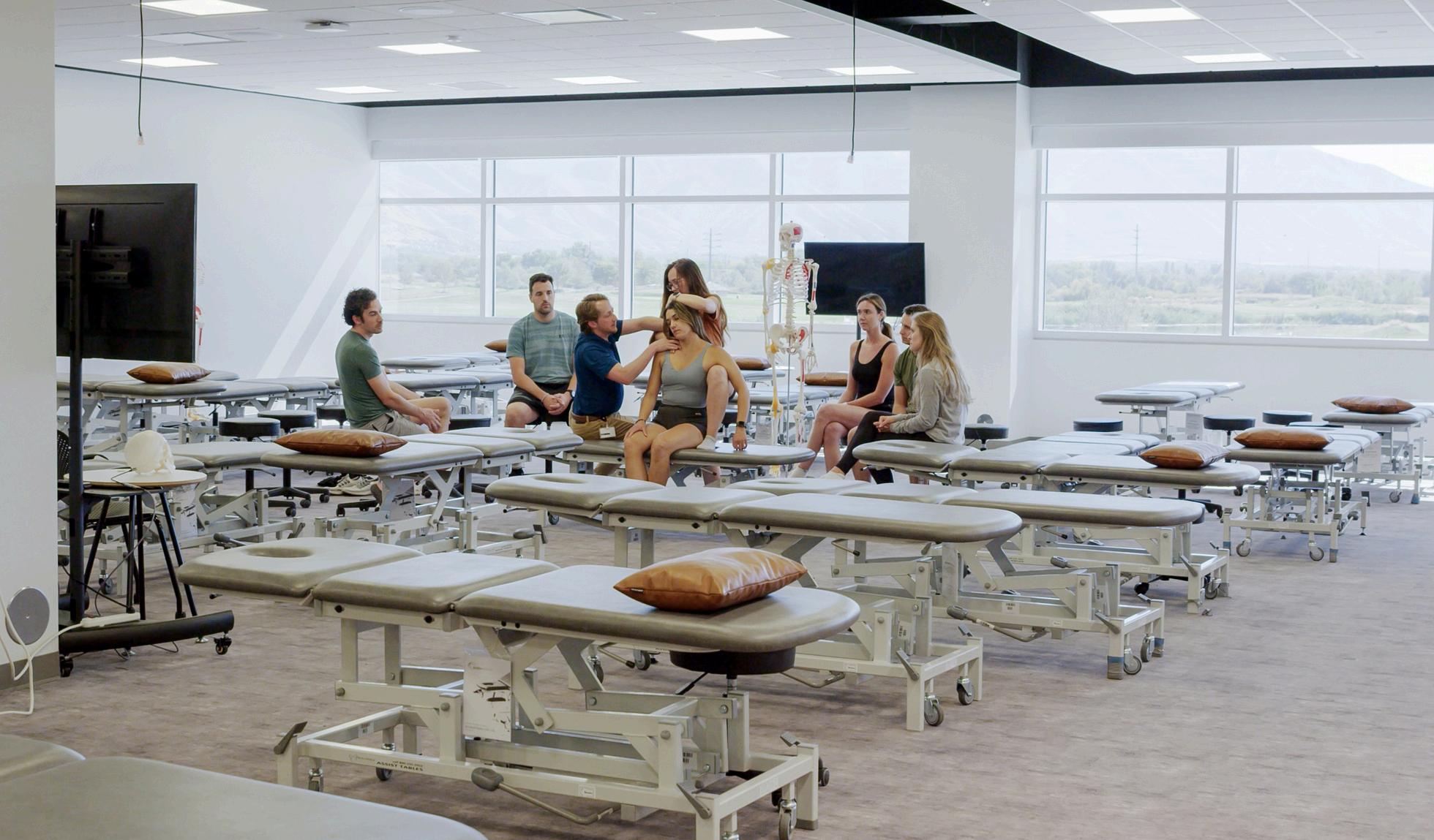 Students can move mounted TVs to their practice table and practice techniques on peers.
