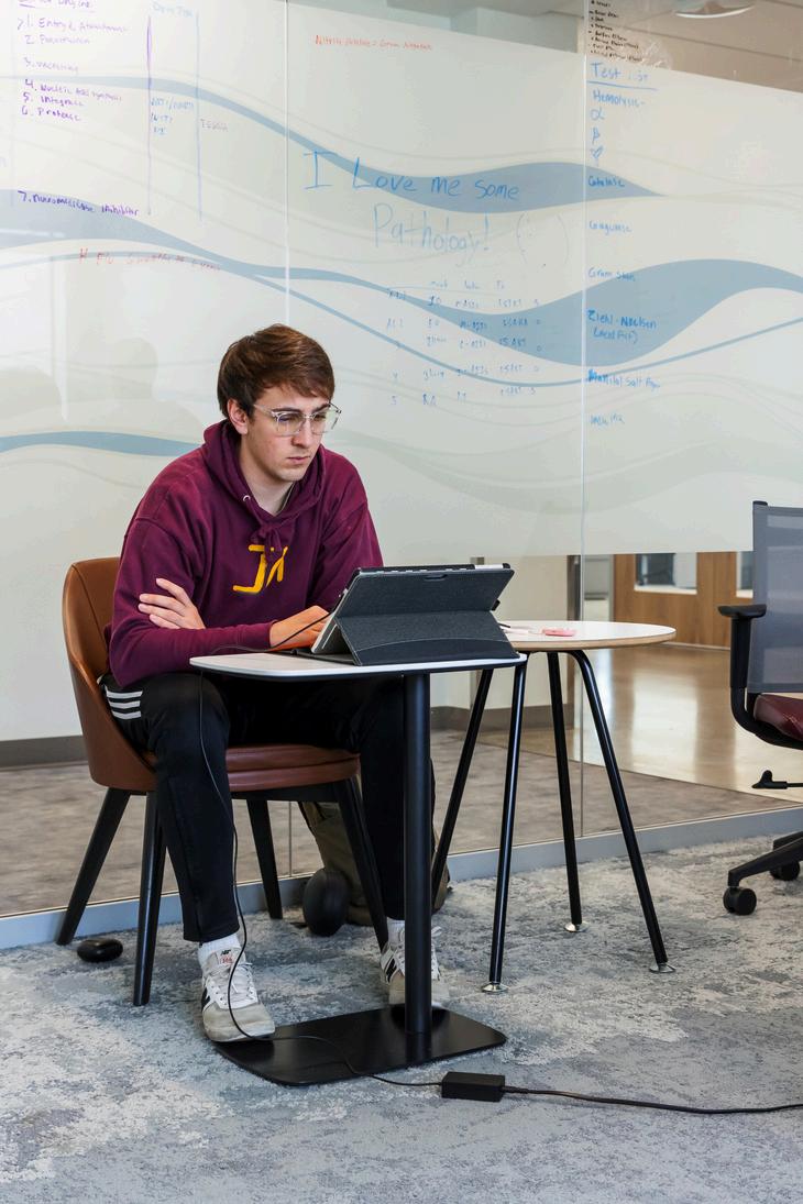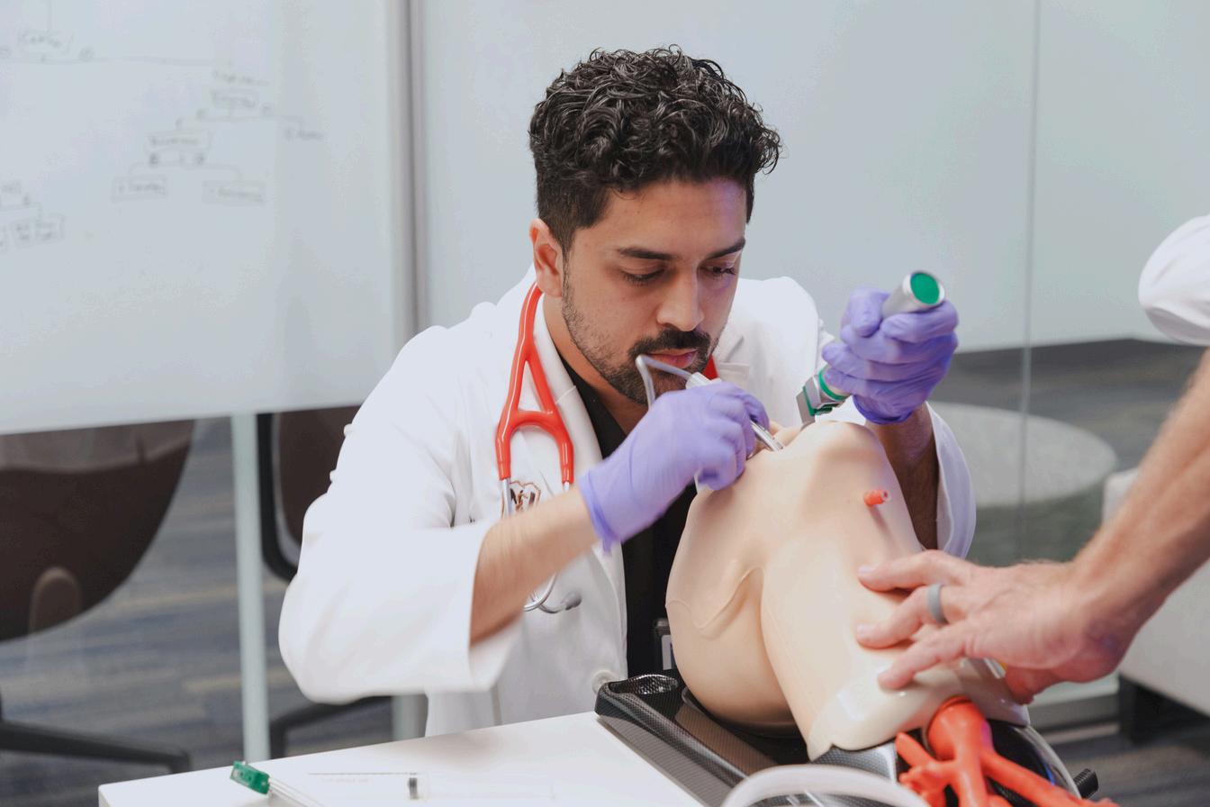 These immersive experiences mimic a clinic-style visit and require students to interact with a patient actor, offer a diagnosis, and create a treatment plan. Students are also trained in bedside manner and compassionate communication