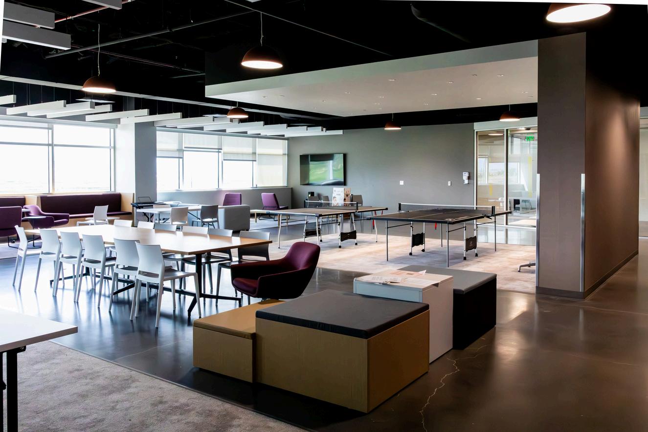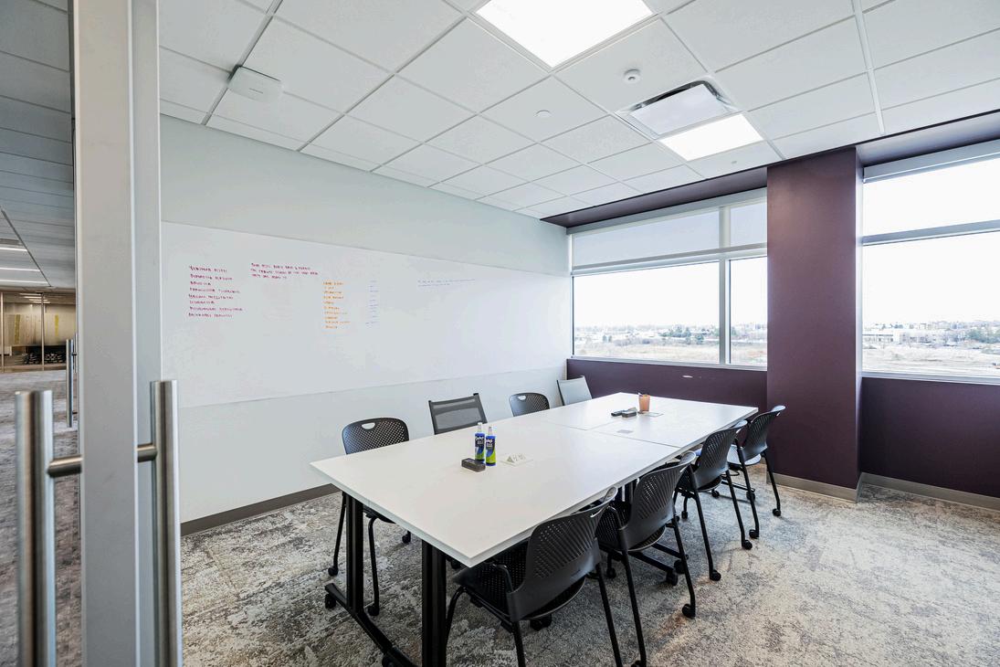 Complete with furniture (living room-style or conference roomstyle), a TV for streaming, whiteboard walls, and a wall of windows in every single pod for optimal exposure to natural light