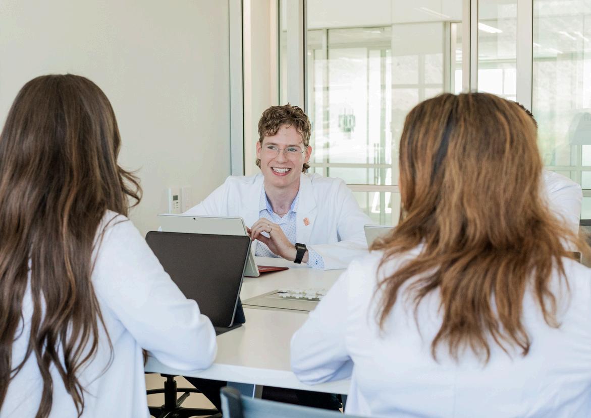These immersive experiences mimic a clinic-style visit and require students to interact with a patient actor, offer a diagnosis, and create a treatment plan. Students are also trained in bedside manner and compassionate communication