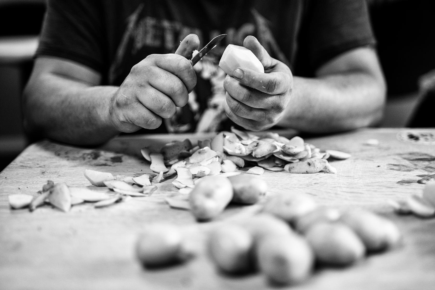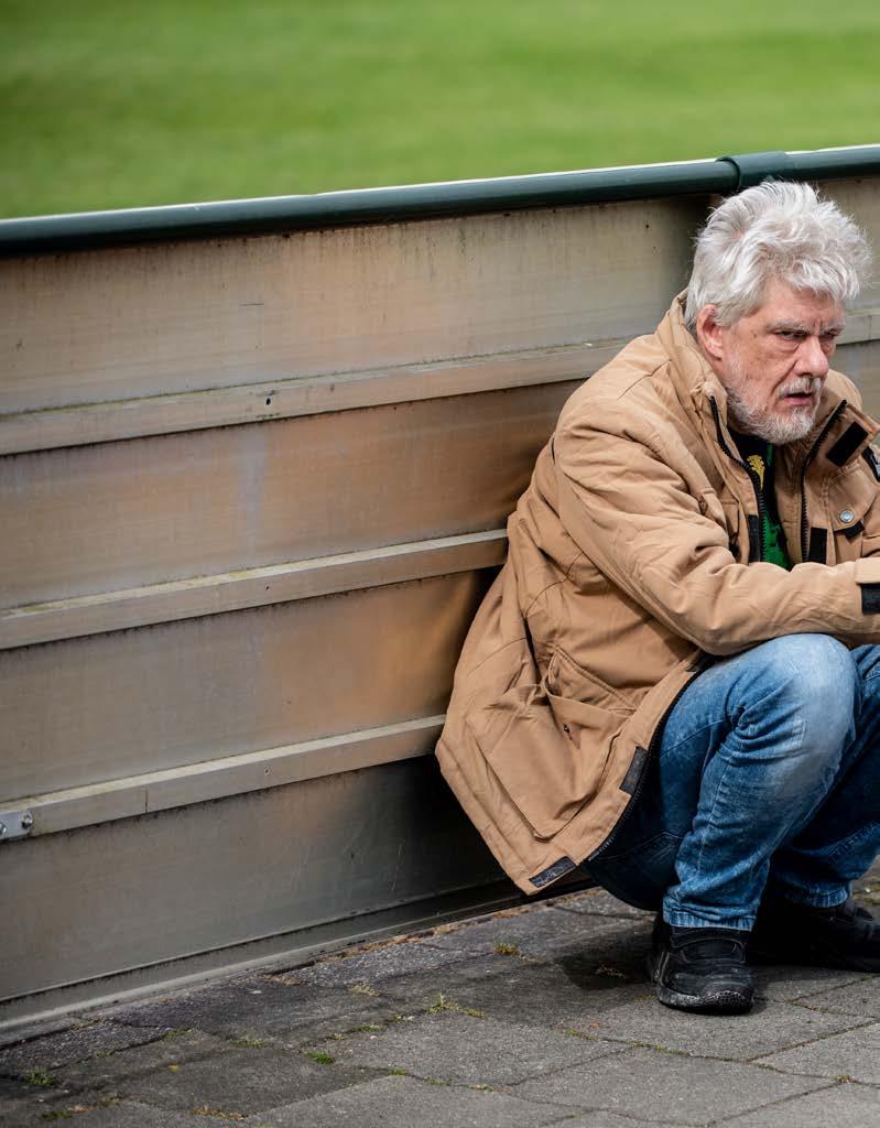 overige Oranjeborg-locaties interessant kan zijn. Als het aan bewoner Leo ligt, mogen de graafwerkzaamheden op korte termijn beginnen. Hij is een man van de natuur, die opgroeide in Den Haag en zich in Biddinghuizen vooral over het groen en de dieren heeft ontfermd. Terwijl een paar medebewoners zich koesteren in de zon, is hij druk bezig met schoffelwerkzaamheden. ‘Het werk gaat altijd door’, zegt hij, terwijl hij een zweetdruppel van z’n voorhoofd veegt. In de keuken van het hoofdgebouw treffen we DJ. Hij is de kok van de locatie, een boomlange vent die vrijwel dagelijks voor overheerlijke gerechten zorgt. DJ heeft een horecaverleden en hij heeft het goed naar z’n zin in Biddinghuizen. ‘Ik ben blij dat ik hiernaartoe ben gekomen. Toch ben ik nu wel toe aan iets anders, een eigen huisje, maar wel iemand of iets om op terug te vallen.’ Net als de andere mannen op deze locatie heeft hij het verleden achter zich gelaten. ‘Ik ben nu drie jaar clean, dat was mij ergens anders waarschijnlijk niet gelukt.’