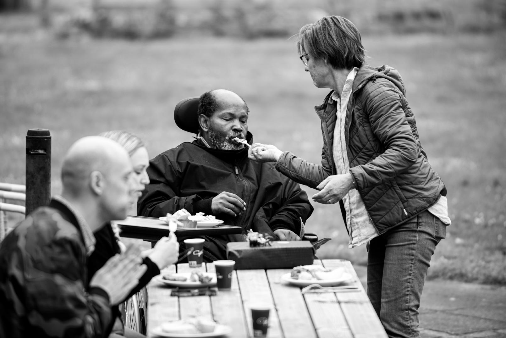 Het geheim achter het succes? Dieke, gedecideerd: ‘We durven stelling te nemen in zaken die bewoners niet zelf kunnen beslissen. En we kijken altijd naar waar de bewoner goed in is. Dan proberen we die kwaliteiten uit te vergroten.’ Grenzen stellen en bewaken. En daardoor de duidelijkheid creëren, die Ramon in vorige zorginstellingen zo miste. ‘Maar dat wil niet zeggen dat we alleen temperen’, benadrukt Jamie. ‘Integendeel zelfs. We geven de mannen juist enorm veel vrijheid, maar we werken ook sterk aan het normaliseren van gedrag. Normaal doen is hier heel belangrijk.