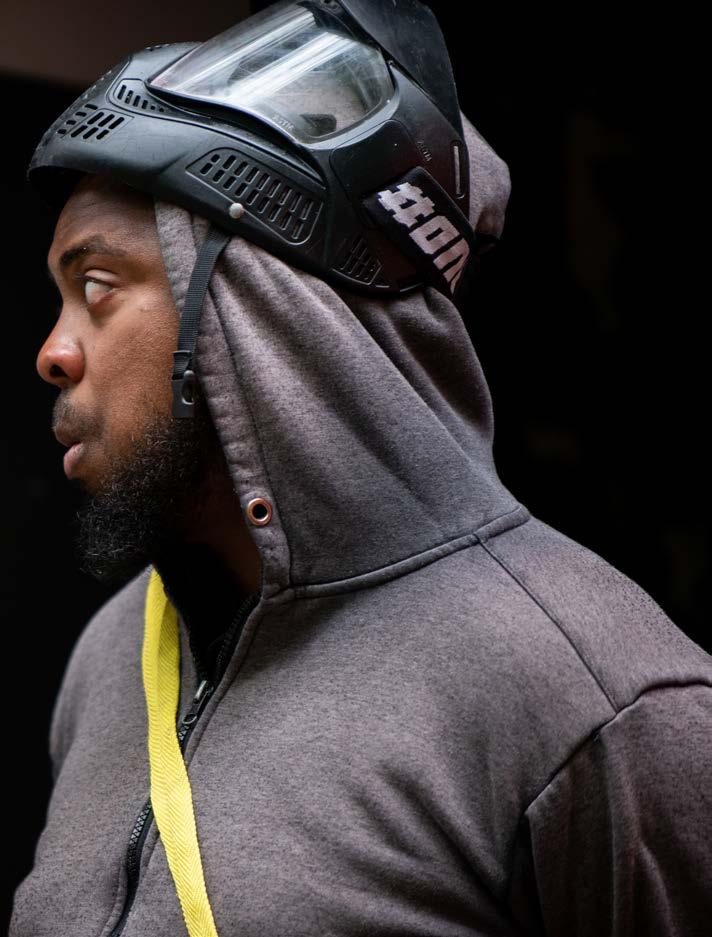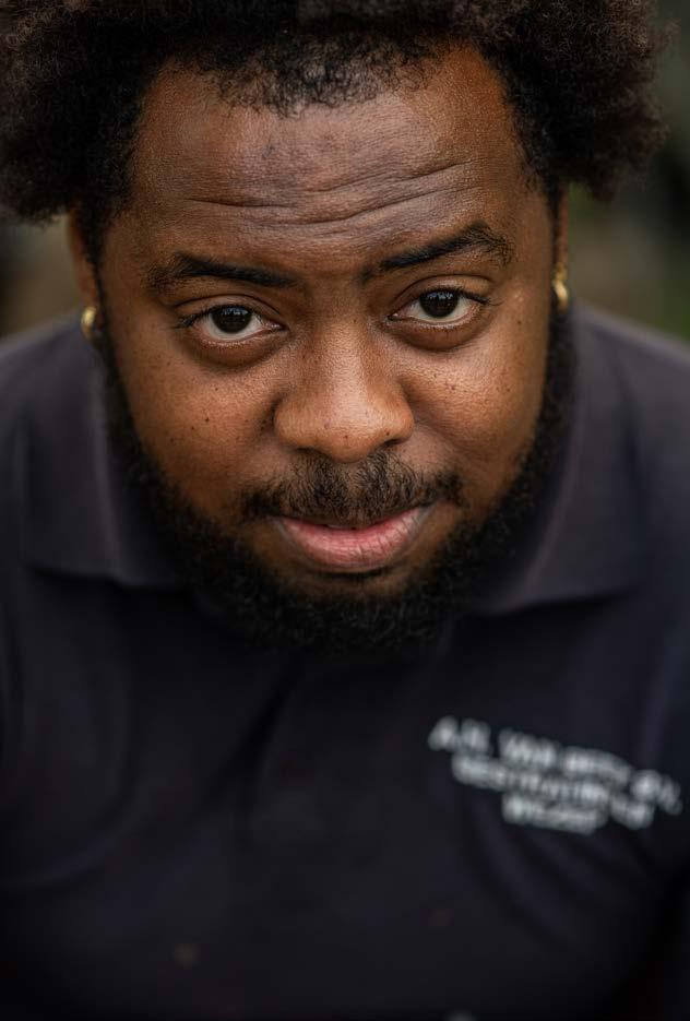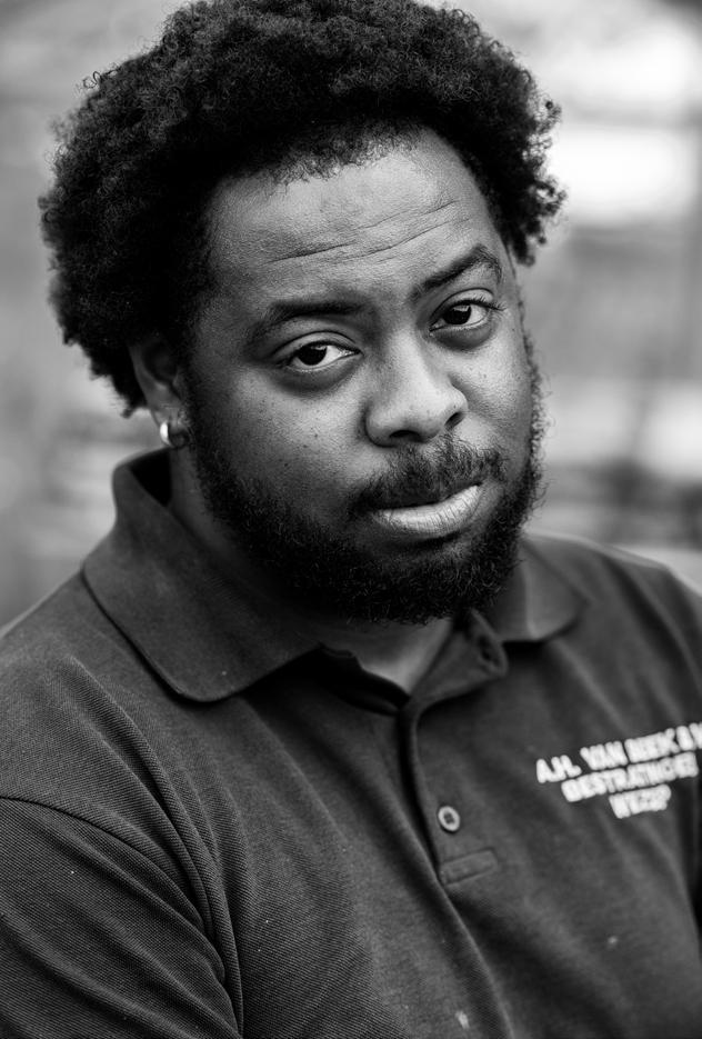 Redouan is de technische man van de Oranjeborg-locatie in Epe. Een uitbundige boks ter begroeting, een open blik, hoewel z’n gezicht gedeeltelijk bedekt gaat onder een capuchon. Dit is zíjn terrein. Hij wijst naar de tractor, waarvoor hij een certificaat heeft behaald en waarop hij regelmatig is te vinden. In de werkplaats laat hij de fietsen zien waaraan hij momenteel sleutelt. Hij is afkomstig uit Amsterdam en woont al acht jaar op deze locatie. Een fijne plek, zegt hij, maar vanbinnen brandt het verlangen om meer op eigen benen te staan.