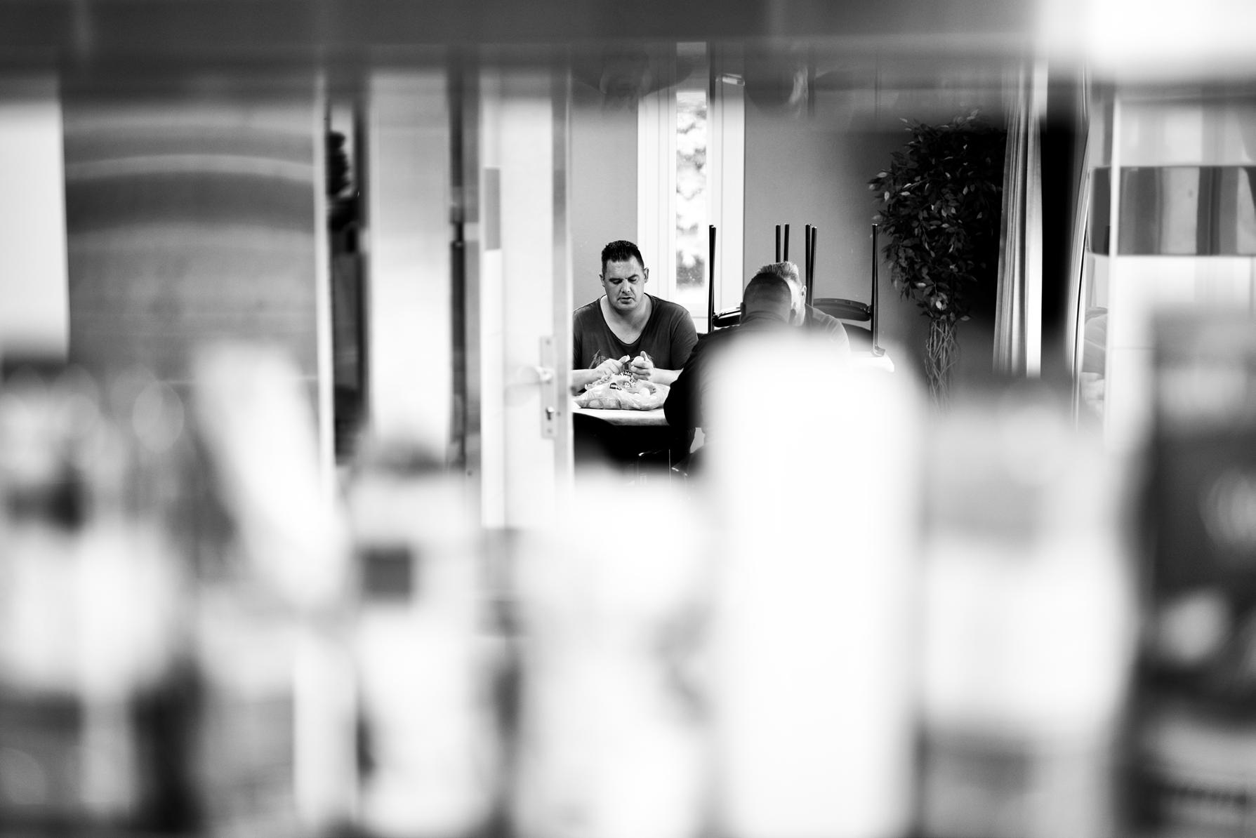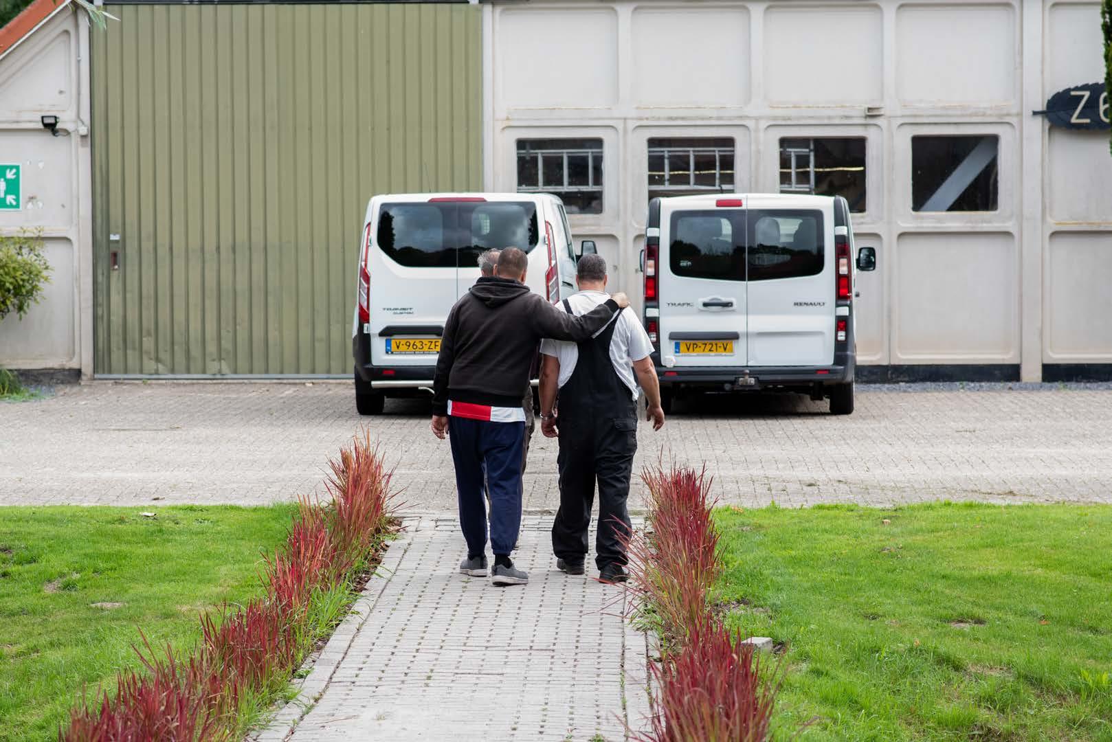De ontvangst is hartelijk. Een deel van de bewoners staat klaar om in twee busjes naar de dagbesteding te gaan. Ze weten niet beter. Iedereen heeft z’n taak. Vroeg uit de veren, een goed ontbijt en dan de handen uit de mouwen. Nog snel even een sigaretje en dan aan de slag. Binnen brandt de kachel en staat verse koffie klaar. René Schotman legt zijn wollen muts op tafel en opent het gesprek. Een sympathieke kerel, die elke dag met plezier op de fiets stapt om naar zijn werk te gaan. Hij staat symbool voor de no-nonsensementaliteit die hier heerst: ‘Soms moet je dingen loslaten. Er komt altijd een nieuwe dag.’