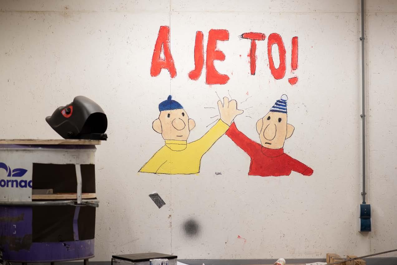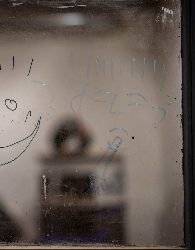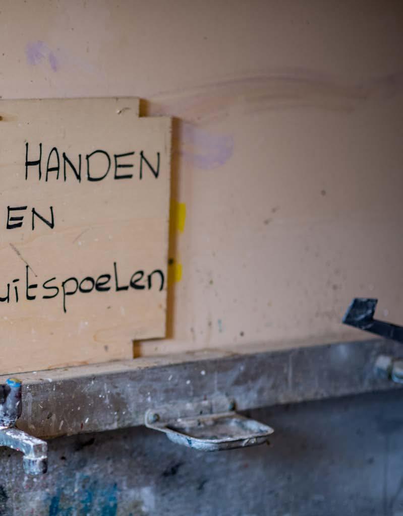 vertelt Teymur. ‘Dan merk je dat de oorlog bij onze bewoners heel wat heeft losgemaakt.’ Het is tijd voor een rondgang door het gebouw. In de gangen wordt hard gewerkt om de vloeren op te knappen. Dat gebeurt door zij-instromer Jeroen, die best wat assistentie kan gebruiken, maar bewoner Jan – die vanuit Biddinghuizen in Havelte is terechtgekomen – voelt er niets voor om de handen uit de mouwen te steken. ‘Daar is toch niks aan, man’, zegt hij quasi-onverschillig, waarna de mannen in lachen uitbarsten.