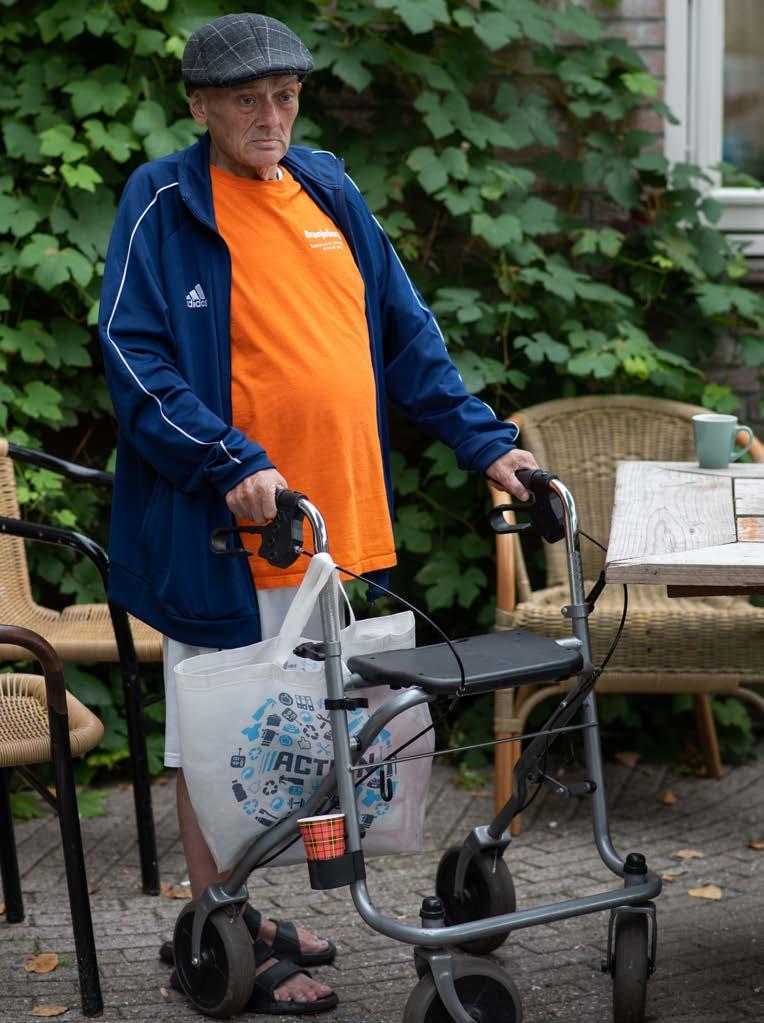 stad naar een pand tegenover het station vertrok. Wat hij daar zag, is misschien wel typerend voor de respectvolle manier waarop iedereen met elkaar omgaat binnen de zorginstelling. ‘De een sjouwde zich de blubber, de ander stond rustig een shagje te draaien. Maar geen verontwaardigde blikken, hè. Je doet het naar vermogen.’