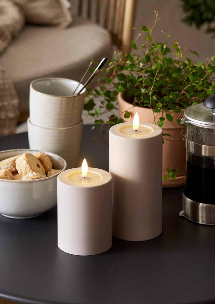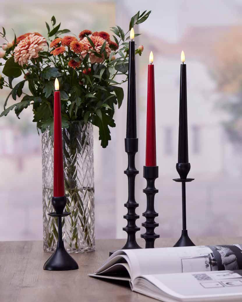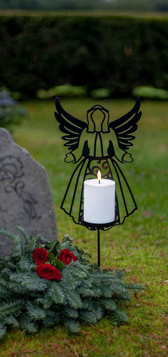 Smooth surface, with a lifelike flame effect. For outdoor use.