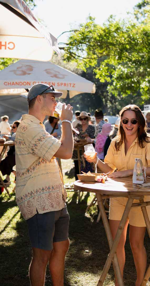 For a more intimate Festival Village experience, the Chandon Lounge offers two exclusive, ticketed sessions daily, each with unique offerings. Guests can enjoy catering takeovers by top local restaurants and collaborations with the region's finest artisan producers. With only 200 tickets available per session (18+ only), these will sell out fast! Your ticket includes a private marquee and lawn area, express entry, access to Festival Village, complimentary catering, and three drinks: a Chandon Garden Spritz on arrival, a Matso's Ginger Beer, and a choice of local beers (all other beverages are at your own expense).