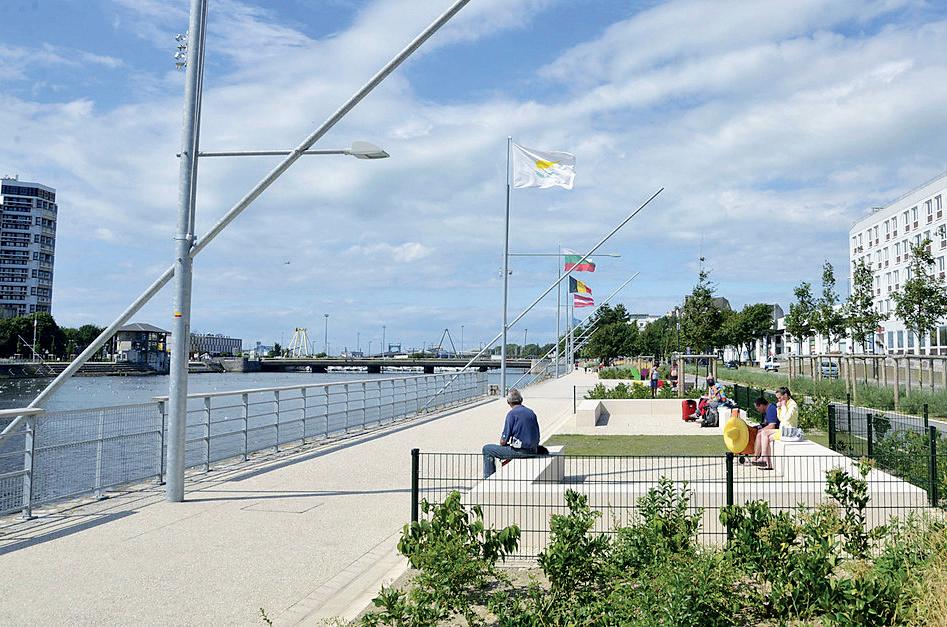 Le pont de l’Entente Cordiale et la passerelle du Pont Marguet sont équipés de voies vertes permettant la bonne cohabitation entre les piétons et les cyclistes.