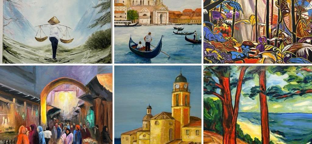 25 visions plurielles 25 artistes y dévoilent leurs visions du voyage à travers peintures, croquis et collages. L’exposition invite à l’évasion : des souks de Marrakech aux paysages d’Italie, en passant par l’Asie, l’Afrique ou encore les demeures de Giverny, chaque œuvre raconte un instant suspendu, un souvenir, une lumière. Parmi les artistes exposés, le pu
