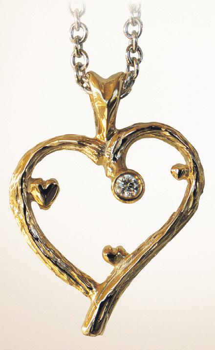 Årets Julehjerte er i år med en over ade, som bærer præg af Livstræets bark, inden i hjertet gemmer der sig 3 små hjerter som symboliserer de relationer der vokser igennem livet. Hjertet er lavet i 14 kt. guld og har en diamant isat , som er brilliant slebet, den smukkeste slibning en diamant kan have, vægten er 0,03 ct. kæden som følger med, er en sølvkæde der er rhodineret, så den holder glansen.