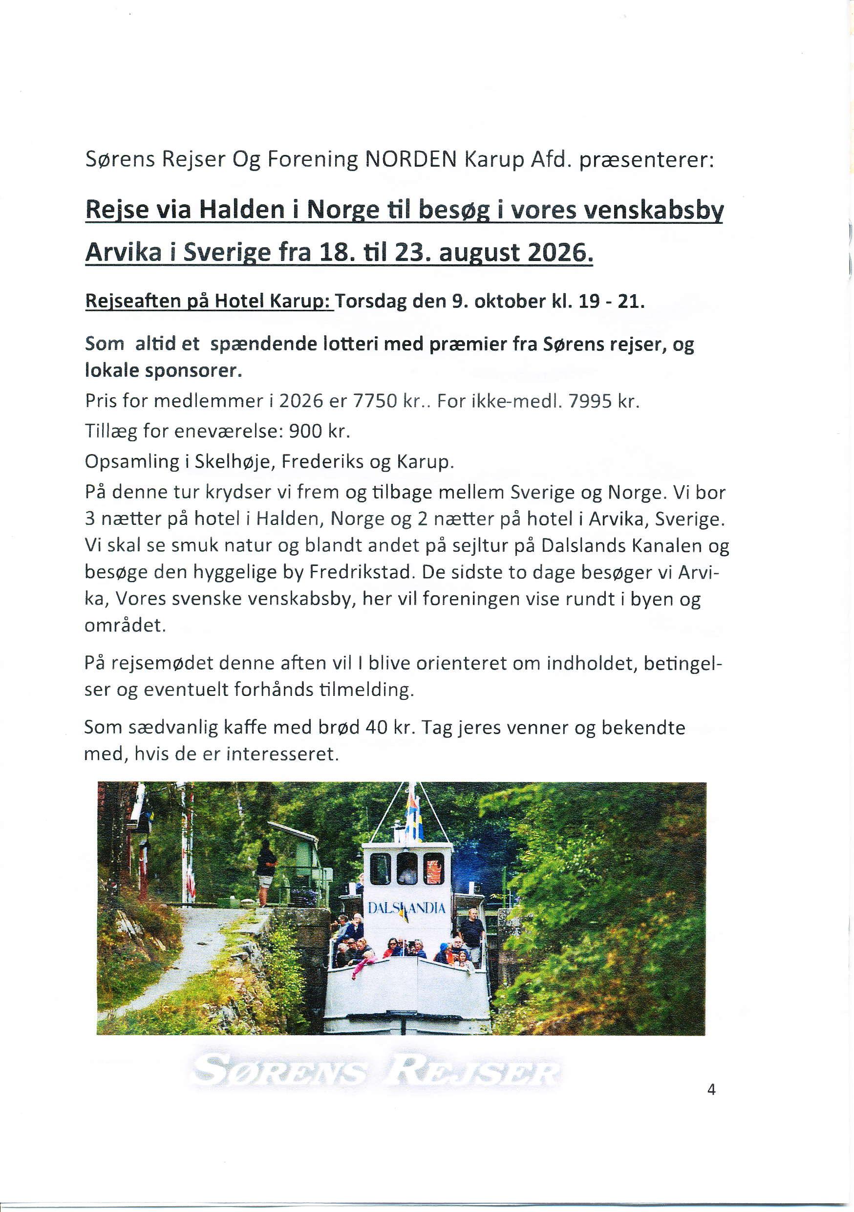 Sørens Rejser Og Forening NORDEN Karup Afd. præsenterer: