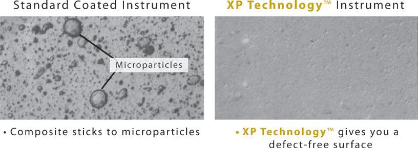 Ytan som skapas är nästintill lika hård som dia mant och ger en slät yta som eliminerar risken att kompositen klibbar till instrumentet och