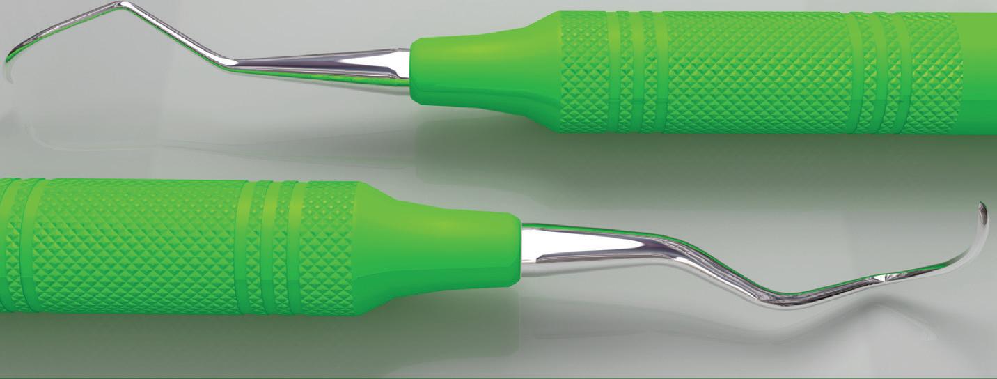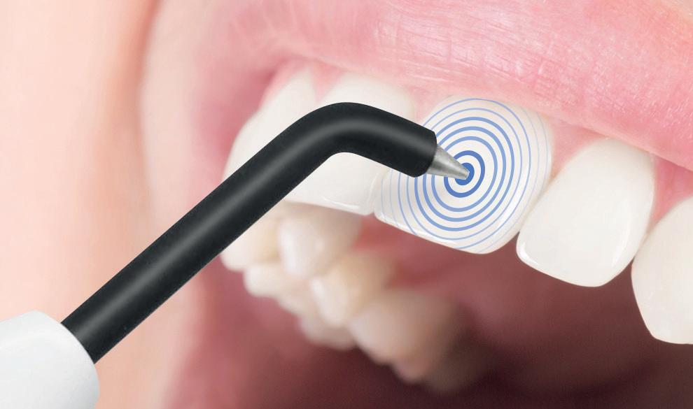 vilket medför ett mycket lättare grepp. Endast ett lätt tryck behövs för att plana bort tandstenen.