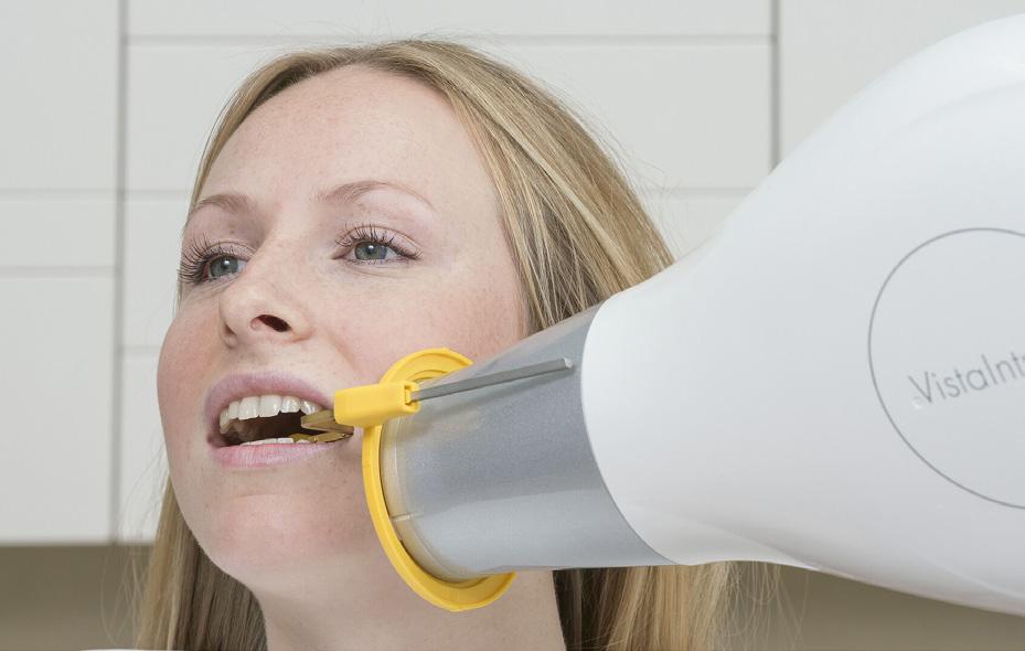 Tack vare handtaget på röntgenhuvudet kan VistaIntra placeras bekvämt och exakt. Valet av tandregion är ock så extremt enkelt. Vid behov kan röntgenparametrarna finjusteras och en snabb förändring mellan två strål ningsinställningar är möjlig, till exempel för bildplatta och sensor. Timerns tydliga symboler förbättrar dessut om arbetsflödet och minskar risken för fel.