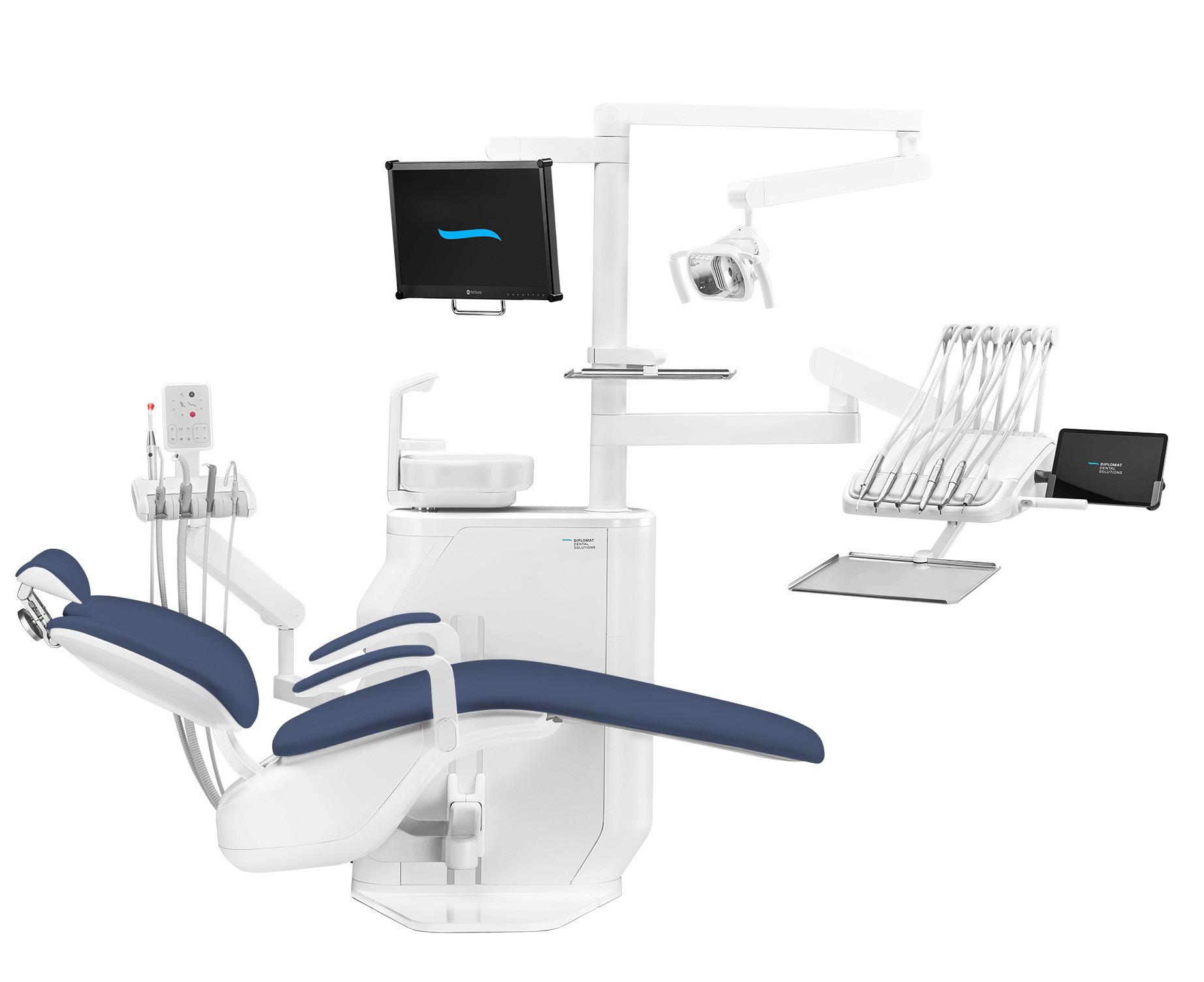 En fullutrustad stol för dig som vill ha extra allt! Med sex instrument och operations lampa. För vått sugsystem. Premiumpaketet med en superskön klädsel i en klassisk blå ton.