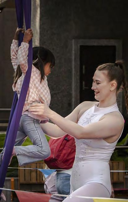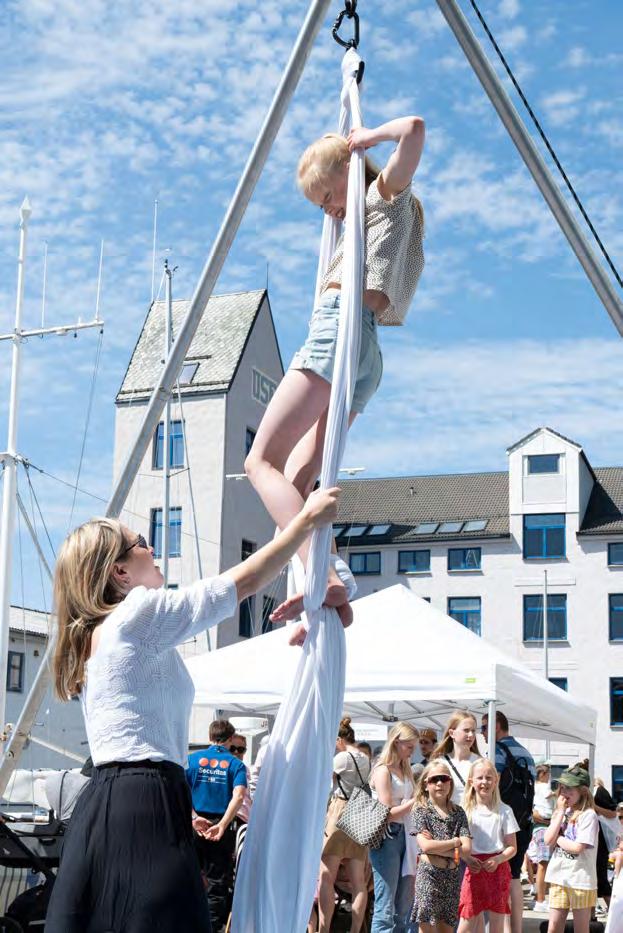 Hit kjem luftakrobatane Ariel Andresen og Ida Breivik, begge godt kjende frå sirkusmanesjen, slangemenneske og handstandsakrobat