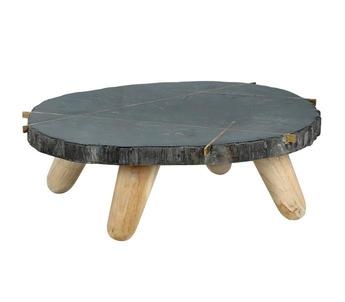 TEAK & PETRIFIED WOOD BLACK WITH BRASS DETAIL