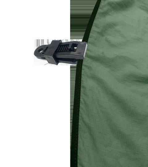 Kahvan elastiset kiinnityslenkit (4 kpl) rullataan molemmin puolin kelan jalan yli aivan jalan tyviosaan. Yhdessä ne puristavat tasaisesti molemmin puolin kelan jalkaa vavan kahvaa vasten ja pitävät kelan tukevasti paikoillaan. Kelan asettaminen paikalleen on helppoa, mutta kiinnitys mahdollistaa myös kelan helpon siirtämisen ja vavan tasapainottamisen eripainoisille keloille.