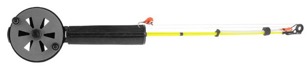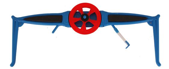 • Kahvan elastiset kiinnityslenkit (4 kpl) rullataan molemmin puolin kelan jalan yli aivan jalan tyviosaan. Yhdessä ne puristavat tasaisesti molemmin puolin kelan jalkaa vavan kahvaa vasten ja pitävät kelan tukevasti paikoillaan.