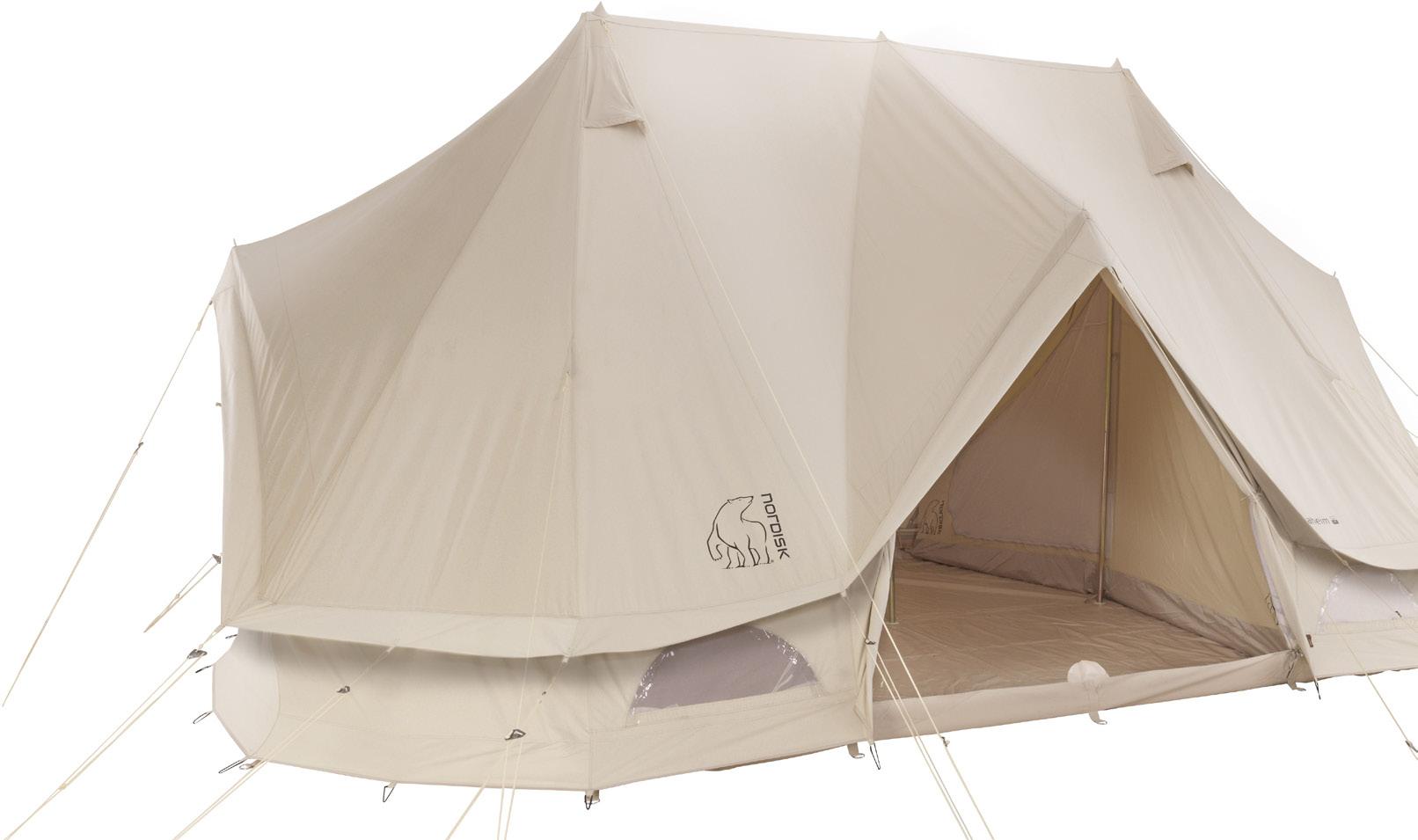 You can always recognize a Nordisk tent on the classic Sandshell colour, the polar bear logos and the Danish Dannebrog flag label.