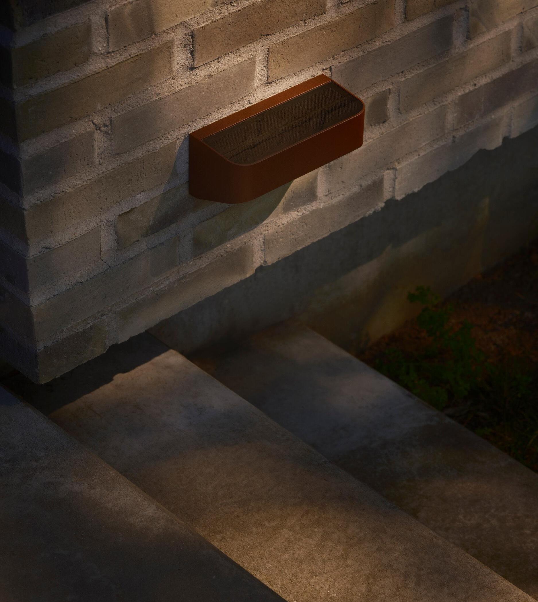 Marcellio by Danish design studio Says Who is a wireless wall light with an elegant, curved shape and built-in solar panel. It charges during the day and switches on automatically when it senses movement. The downward light makes it ideal for entrances, garden paths or along fences. Easy to install with no cables required.