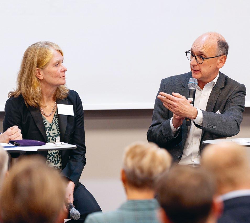 11. Landestagung des Deutschen Arbeitsgerichtsverbandes für den Norden am 21. November in Kiel: Zahlreiche namhafte Professoren, führende Arbeitsrichter bis hin zur Präsidentin des Bundesarbeitsgerichts, Inken Gallner, und Vertreter aus Unternehmen und Gewerkschaften diskutierten rechtliche und praktische Wege zur Stärkung der Tarifbindung. Auf einer Podiumsdiskussion verdeutlichte der stellvertretende NORDMETALL-Hauptgeschäftsführer Dr. Peter Schlaffke (Foto r. mit Birgit Voßkühler, Präsidentin des Landesarbeitsgerichts Hamburg) die negativen Folgen angedachter Zwangsmaßnahmen wie die Abschaffung der Mitgliedschaft ohne Tarifbindung (OT) oder Tariftreueregelungen. Schlaffke warb für eine Kodifizierung des Arbeitskampfrechts sowie die Stärkung der Attraktivität des Flächentarifvertrages auf freiwilliger Basis. Luc
