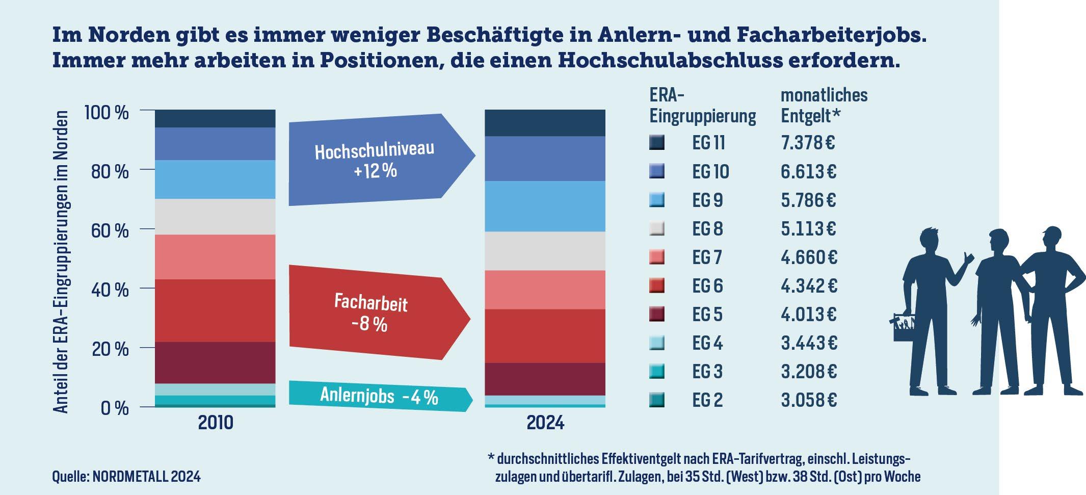 wir dürfen zum Ende dieses Jahres durchaus stolz auf das Erreichte zurückblicken: Erstmals in der Geschichte unseres Verbandes hat NORDMETALL den Pilot-Flächentarifvertrag 2024 für die M+E-Industrie geschmiedet, der jetzt knapp zwei Jahre in Deutschland gilt. Und erstmals in der Geschichte von Gesamtmetall wurde dieses Ergebnis von zwei M+E-Verbänden gemeinsam erzielt: im engen Schulterschluss mit unseren Mitstreitern aus Bayern. Diese Unterstützung war nicht nur hilfreich, weil die Ausgangspositionen so weit auseinanderlagen, sondern auch, weil die „Lange Nacht“ selbst – begleitet von heftigen Warnstreiks – ein wirklich kräftezehrender Verhandlungsmarathon war. Als am frühen Morgen des 12. November endlich der Knoten durchschlagen war, hatten sich jene Tugenden ausgezahlt, für die wir norddeutschen M+E-Arbeitgeber ebenso stehen wie die IG Metall Küste: verlässliche Absprachen, eine sachliche und konstruktive Auseinandersetzung sowie ein fairer, respektvoller Umgang auf Augenhöhe. Dazu kam das enge und gute Miteinander der beiden Verhandlungsführerinnen, die ihr bundesweites Mandat ebenso beharrlich wie geschickt verfolgten. Am Ende hat das Sozialpartner-Kleeblatt aus Nord und Süd nicht „geampelt“, sondern seinen grundgesetzlichen Auftrag der Tarifpartnerschaft wahrgenommen: mit Lösungswillen, Gestaltungskraft und ganz ohne staatliche Einmischung. Entsprechend großen Beifall fand das gute und zügige Ergebnis in den Medien, wie Sie ab Seite 6 in diesem Heft nachlesen können. Unsere Tarifpartnerschaft hat sich damit als Stabilitätsanker bewährt – keine Selbstverständlichkeit in diesen bewegten Zeiten.