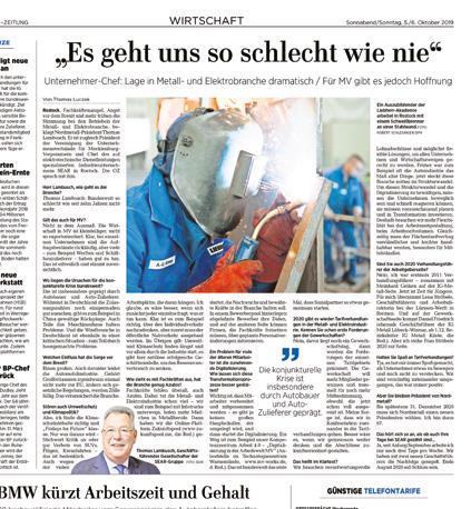 die schlechten Nachrichten scheinen sich in diesem letzten Quartal des Jahres zu häufen, und wir kommen nicht umhin, sie Ihnen in diesem Heft nahezubringen: Die Konjunktur bricht massiv ein, wie die Herbstumfrage unserer norddeutschen Arbeitgeberverbände belegt. Die Bundesregierung plant trotzdem weitere Eingriffe in die Tarifautonomie, und wir befürchten, dass so zusätzliche Belastungen für die Industrie entstehen. Und als ob das noch nicht genug wäre, zeichnet sich eine herausfordernde Tarifrunde 2020 ab, in der es um die Bewältigung der Transformation, um mehr Flexibilität für die Betriebe vor Ort und um einen schlankeren Tarifvertrag mit mittelstandstauglichen Regeln gehen wird.