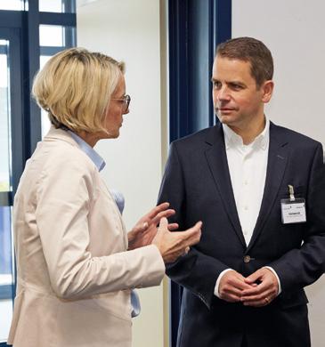 Anschütz in Kiel, auf den veränderten innerbetrieblichen Umgang der Mitarbeiter untereinander, abseits klassischer Hierarchiestrukturen, der sich im Zuge der Arbeit an digitalen Strukturen ergebe. IG Metall Küste-Bezirksleiter Daniel Friedrich forderte deshalb neue Führungskompetenzen bei den Unternehmensleitungen ein. Hamburgs Siemens-Niederlassungsleiterin Sonja Neubert mahnte mehr staatliche Unterstützung für die Cyber Security an: Zwar sei ein Behörden-TÜV für Künstliche Intelligenz und Di-