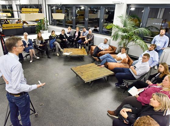 NORDMETALL-Hauptgeschäftsführer Dr. Nico Fickinger bat die Gäste danach zum Ausklang des Abends ins Hotelfoyer und resümierte vor den versammelten Spitzen der norddeutschen M+E-Industrie: „Wir müssen uns daran gewöhnen, dass Führung künftig anders funktioniert als bisher. Das Umdenken beginnt im Kopf“. Alexander Luckow