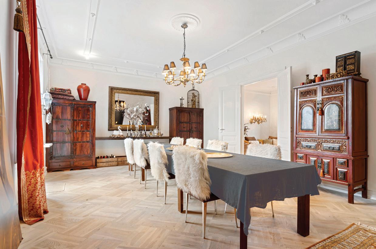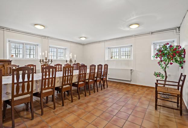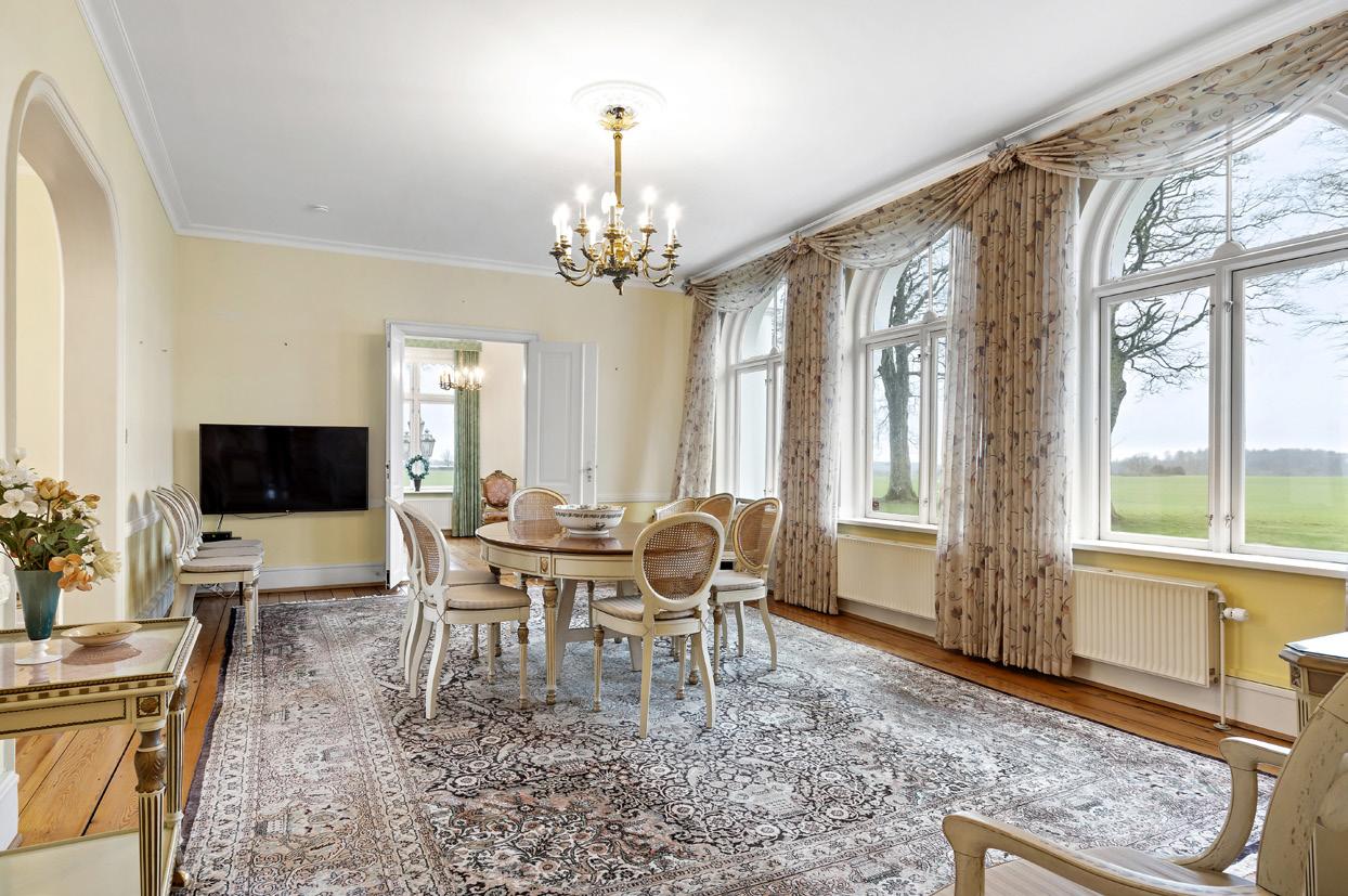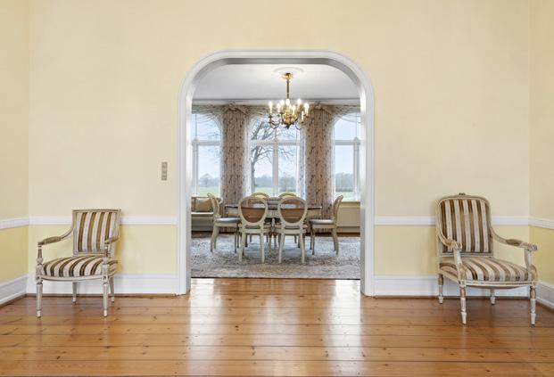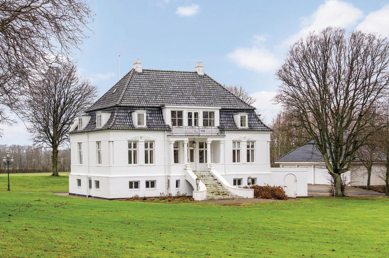 skabelighed i de store stuer, som der er ikke færre end fem af på villaens hovedetage, hvor der også er køkken med spiseplads og gæstetoilet. Underetagen byder på gildesal og pejsestue, der også kan benyttes som jagtstue. Her får I også grovkøkken, madelevator og badeværelse plus flere andre rum. Stilen er over alt herskabelig med flere fi ne detaljer, og stedet fremstår velholdt, imødekommende og spændende.