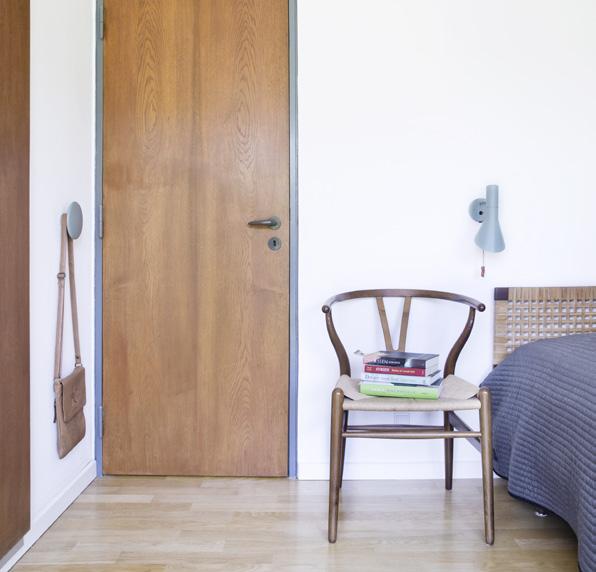 I samarbejde med arkitekt Rasmus Bak gik ejerne all in på bevaring, da de skulle renovere deres hus fra 1959 tegnet af Knud Friis og Elmar Moltke. Rigtig meget er derfor bevaret, blandt andet dørhåndtagene i plastik samt de mahognidøre, som de sidder på. Selv den grå farve rundt om døren er bevaret fra dengang, huset blev opført. Netop nuancen på håndtag og dørkarm kan være en smart måde at undersøge, om dit hus er født med plastikhåndtag. I 60’erne var man nemlig glad for at matche farverne på de to. Det karakteristiske plastikdørgreb produceres i dag af Habo og kaldes Coupé.